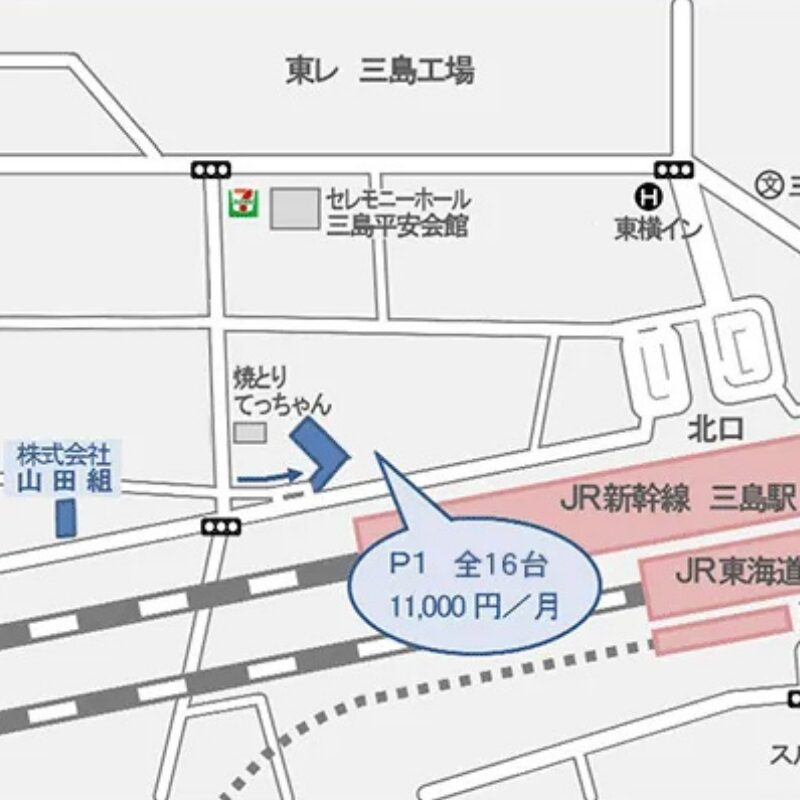 当社では、JR三島駅北口に合計16台の月極駐車場をご用意しております。